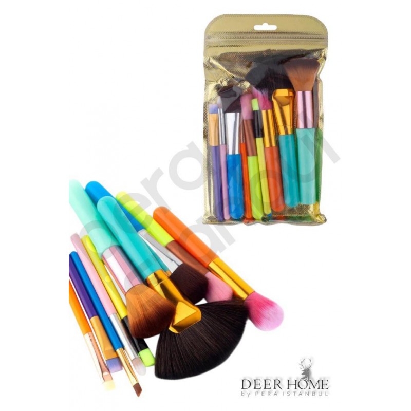 10'lu Rengarenk Temel Makyaj Fırçası Seti