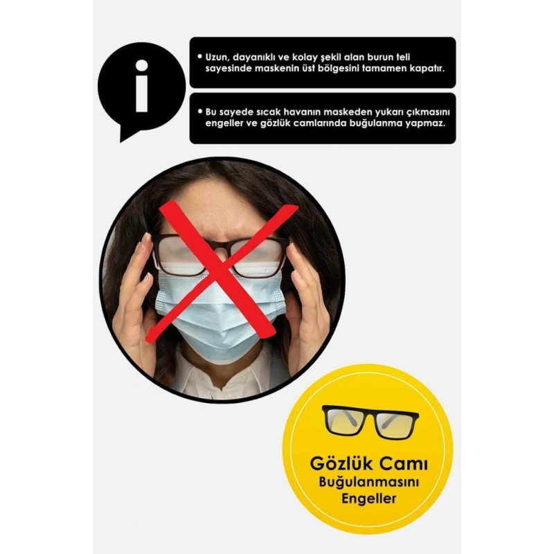 Burun kısmında 10 cm uzunluğunda uzun burun teli bulunmaktadır. Yüz yapısına göre şekil alan kalın ve uzun burun teli sayesinde yanak bölgesinin üstünde ve yanlarda boşluk bırakmaz, yüzünüzü tam olarak sarar.