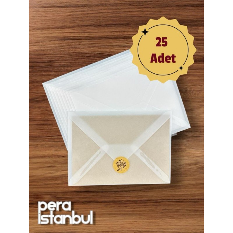 25 Adet Aydınger Transparan Şeffaf Zarf Davetiye Lüks Tebrik Kartı Mektup Mühür Cüzdan