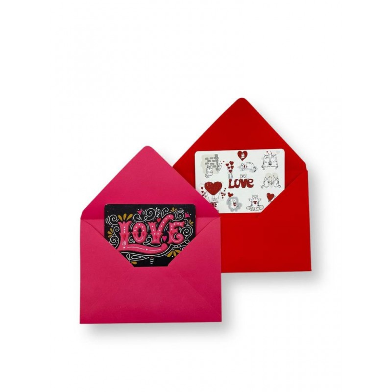 2 Adet Renkli 13x18 Zarf ve 1 Adet Love Yazı Desenli 1 Adet Kedili Love Yazılı Hediye Not Kartı Seti