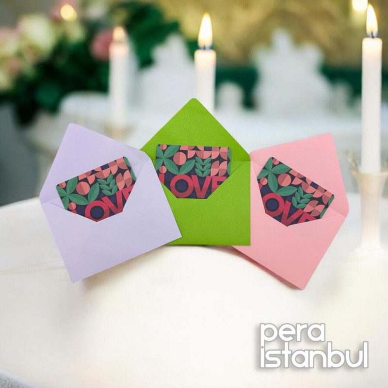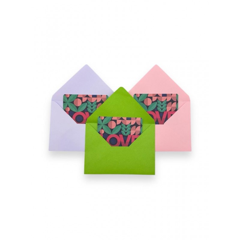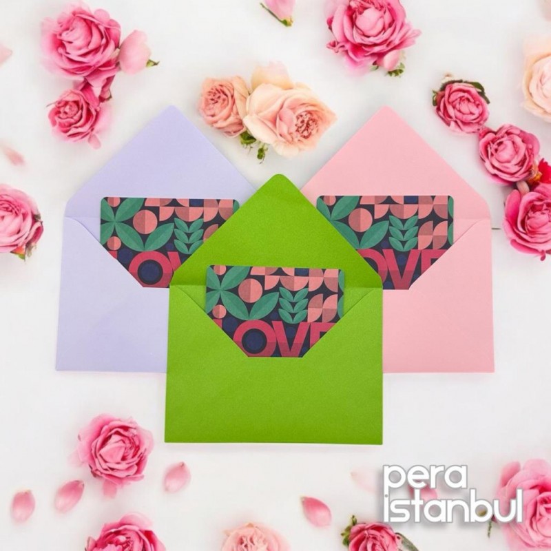 3 Adet Renkli 13x18 Zarf ve 3 Adet Love Desenli Sevgililer Günü Hediyelik Not Kartı Seti