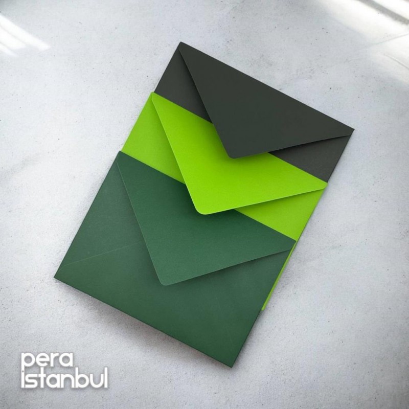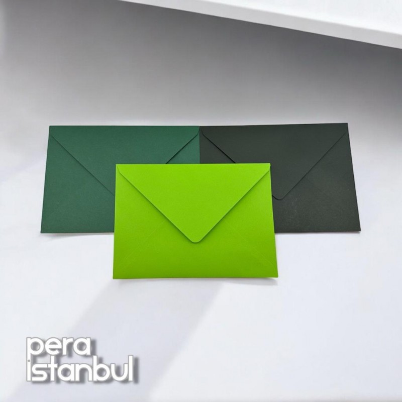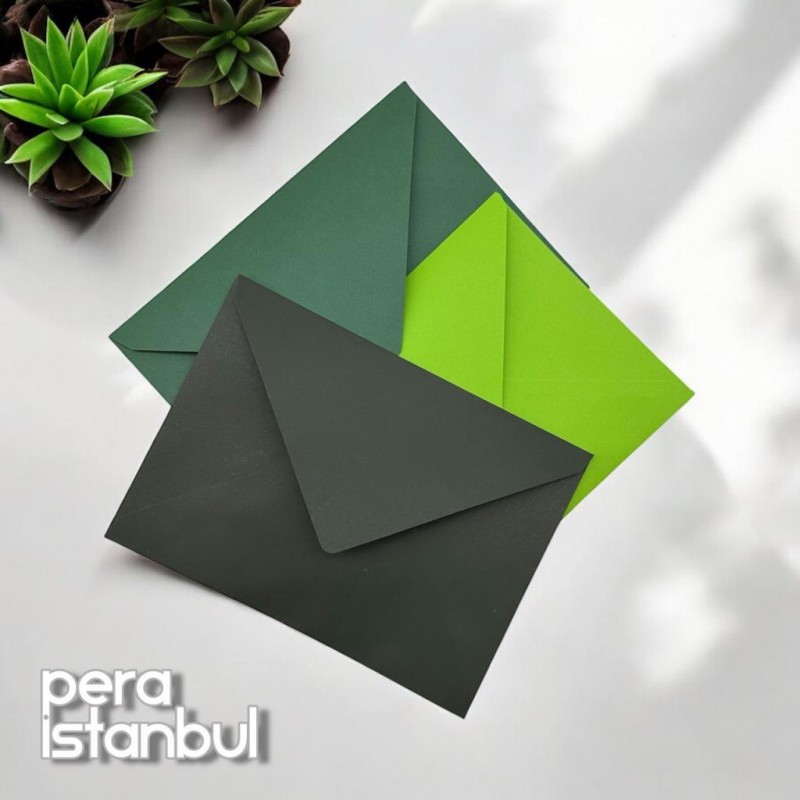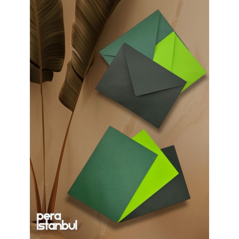 12 Adet 13x18 Yeşil Tonları Davetiye Lüks Tebrik Kartı Mektup Mühür Cüzdan Büyük Kapasiteli Zarf