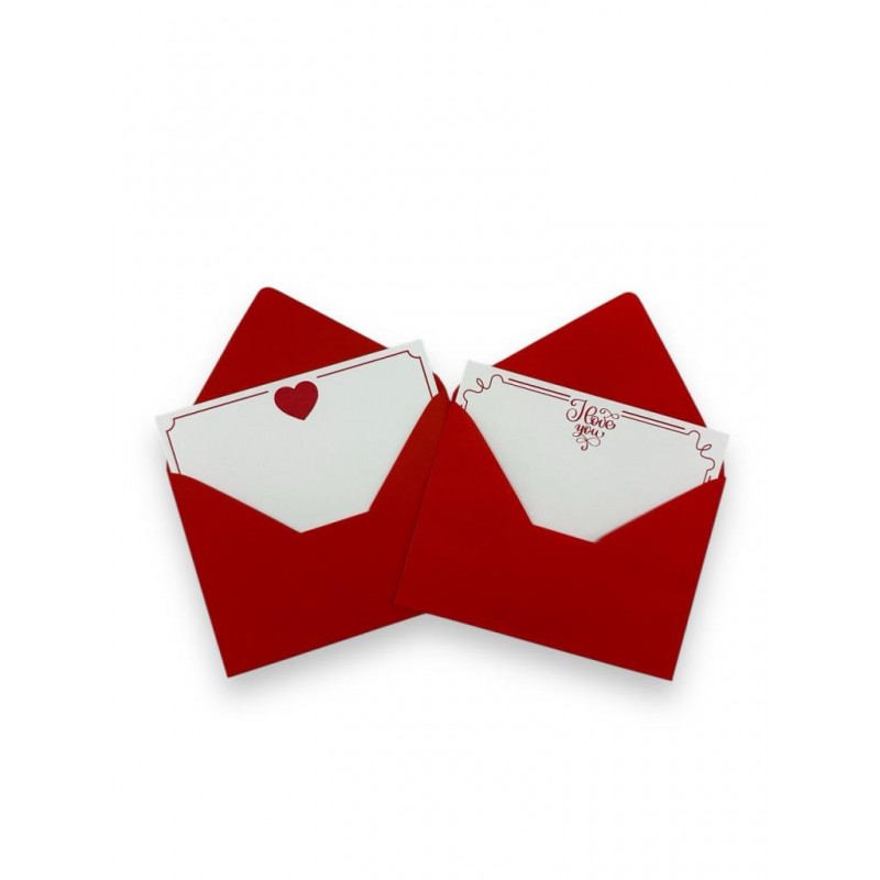 2 Adet Renkli 13x18 Zarf ve 1 Adet Kalp Desenli 1 Adet I Love You Yazılı Hediyelik Not Kartı Seti