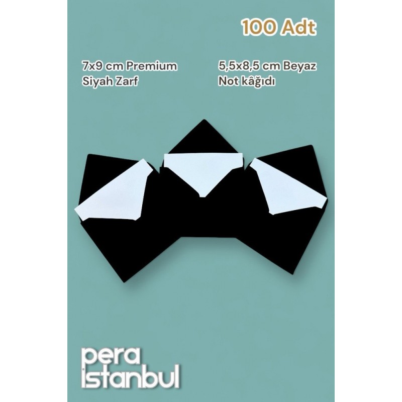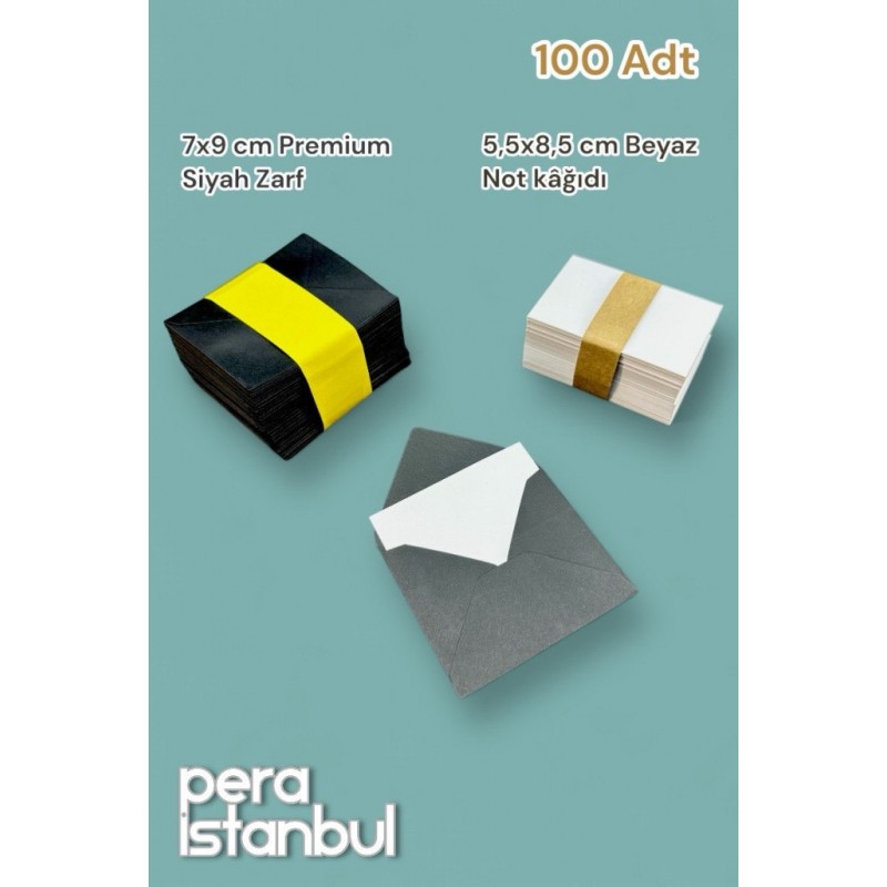 100 Adet Mini Zarf 70mmx90mm Siyah Zarf Hediye Doğum Günü Dilekleri Zarfı Beyaz Not Kartlı