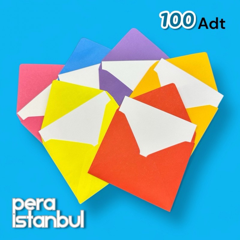 100 Adet Mini Zarf 70mmx90mm 10 Renk Zarf Hediye Doğum Günü Dilekleri Zarfı Not Kartlı Poşetli