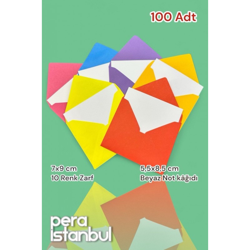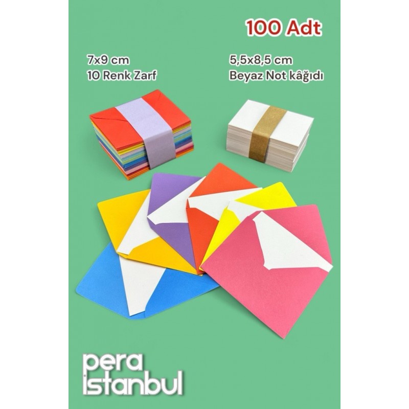 100 Adet Mini Zarf 70mmx90mm 10 Renk Zarf Hediye Doğum Günü Dilekleri Zarfı Beyaz Not Kartlı