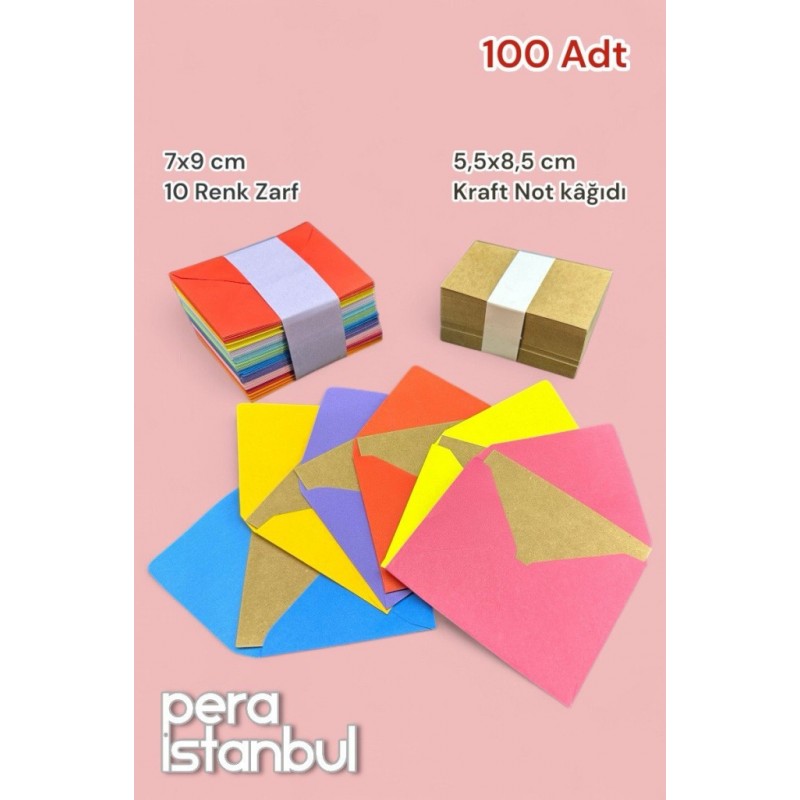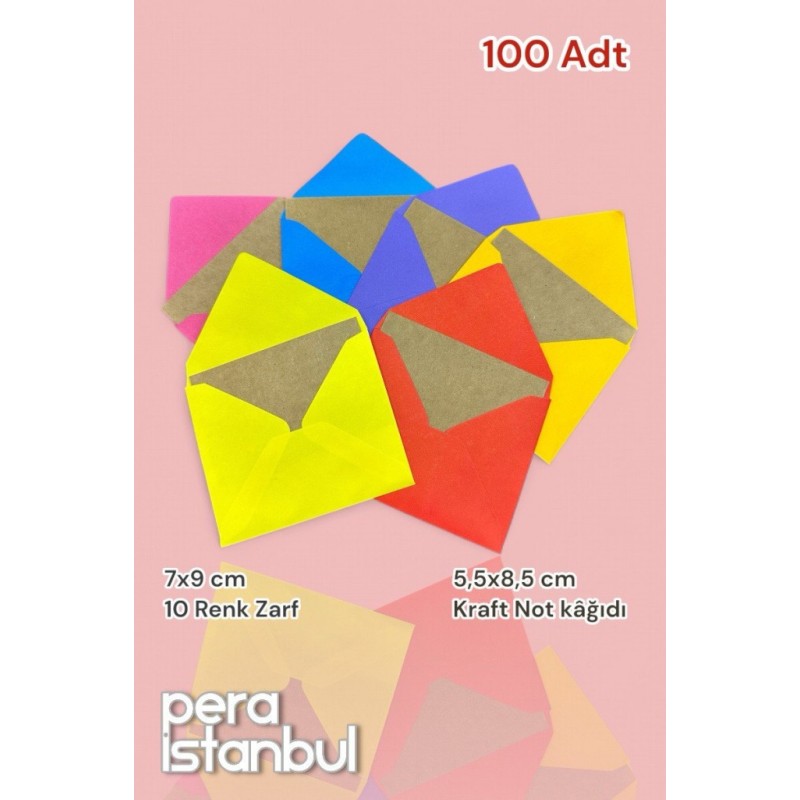 100 Adet Mini Zarf 70mmx90mm 10 Renk Zarf Hediye Doğum Günü Dilekleri Zarfı Kraft Not Kartlı