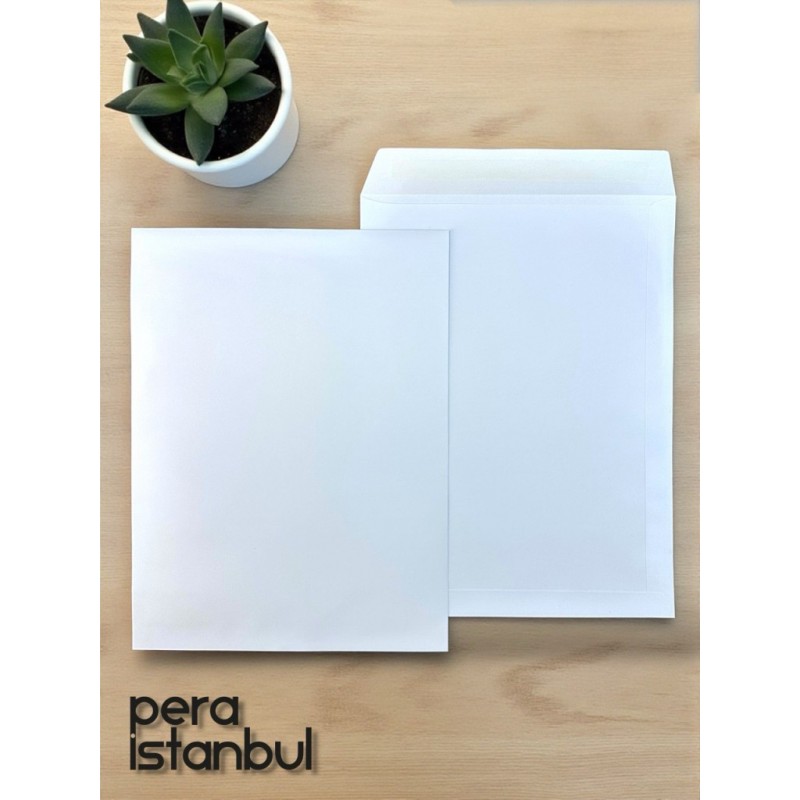 100 Adet Diplomat Beyaz Davetiye Lüks Tebrik Kartı Mektup Mühür Cüzdan Büyük Zarf 105x240mm