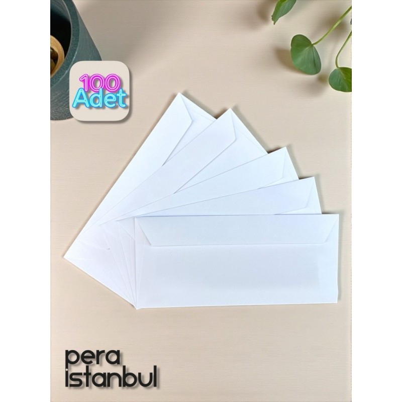 100 Adet Diplomat Beyaz Davetiye Lüks Tebrik Kartı Mektup Mühür Cüzdan Büyük Zarf 105x240mm