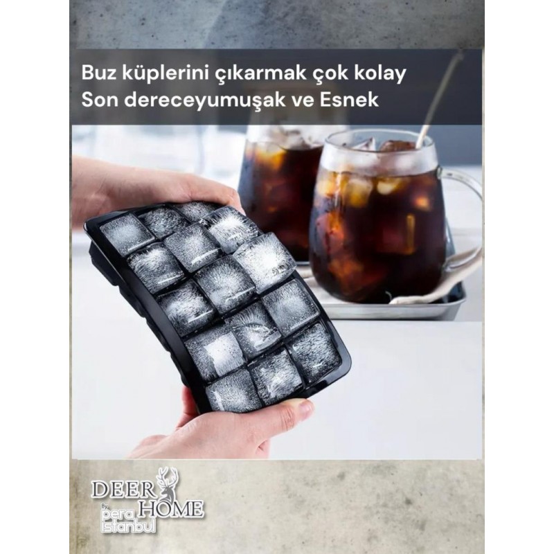 Soğuk içecek keyfinizi bir üst seviyeye taşımaya hazır olun! Deer Home by Pera İstanbul Silikon Buz Kalıbı, küp formundaki buzları kolayca hazırlamanız için özel olarak tasarlanmıştır. Şık siyah rengiyle mutfağınıza modern bir dokunuş katarken, kaliteli silikon yapısıyla pratik ve uzun ömürlü bir kullanım sunar.