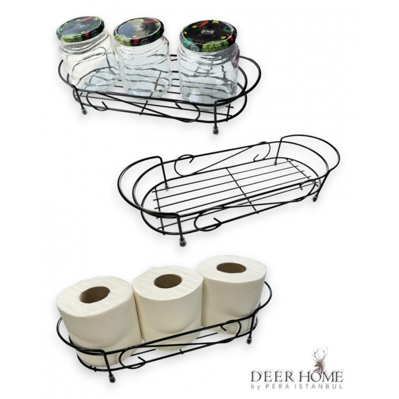 Paslanmaz Siyah Tezgah Üstü Banyo Mutfak Düzenleyici Raf