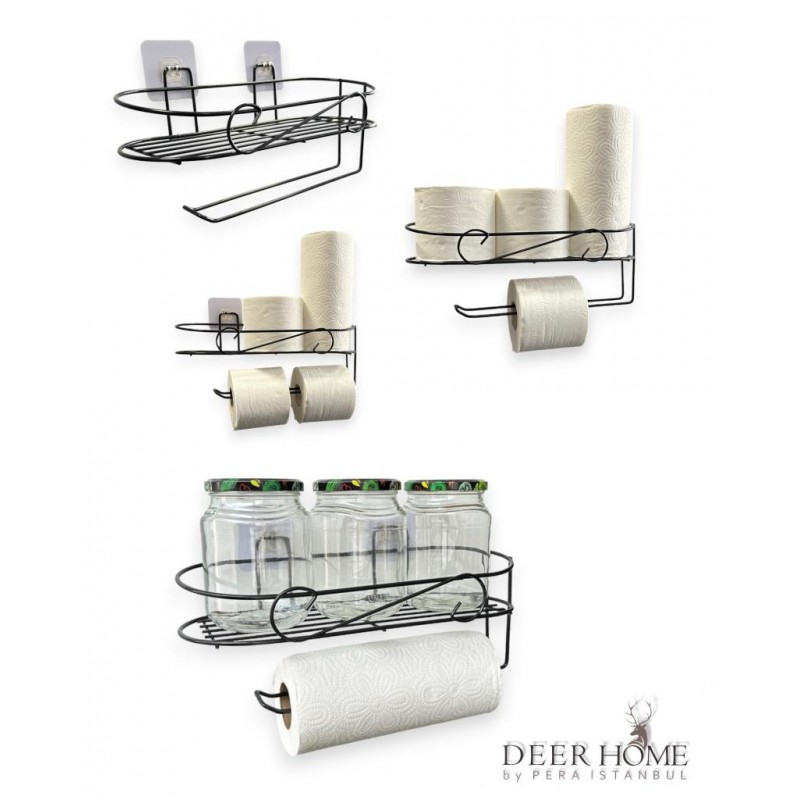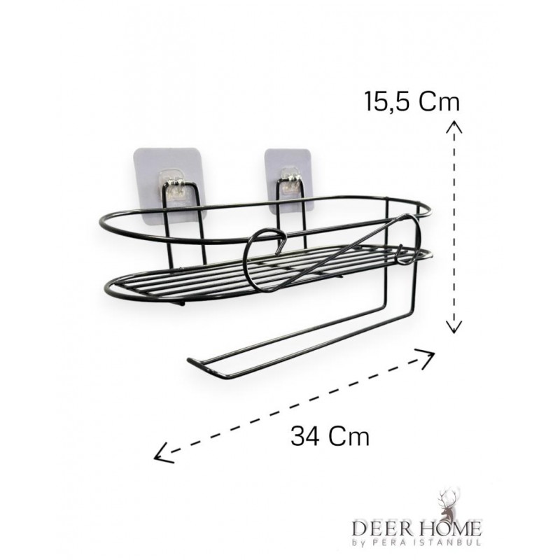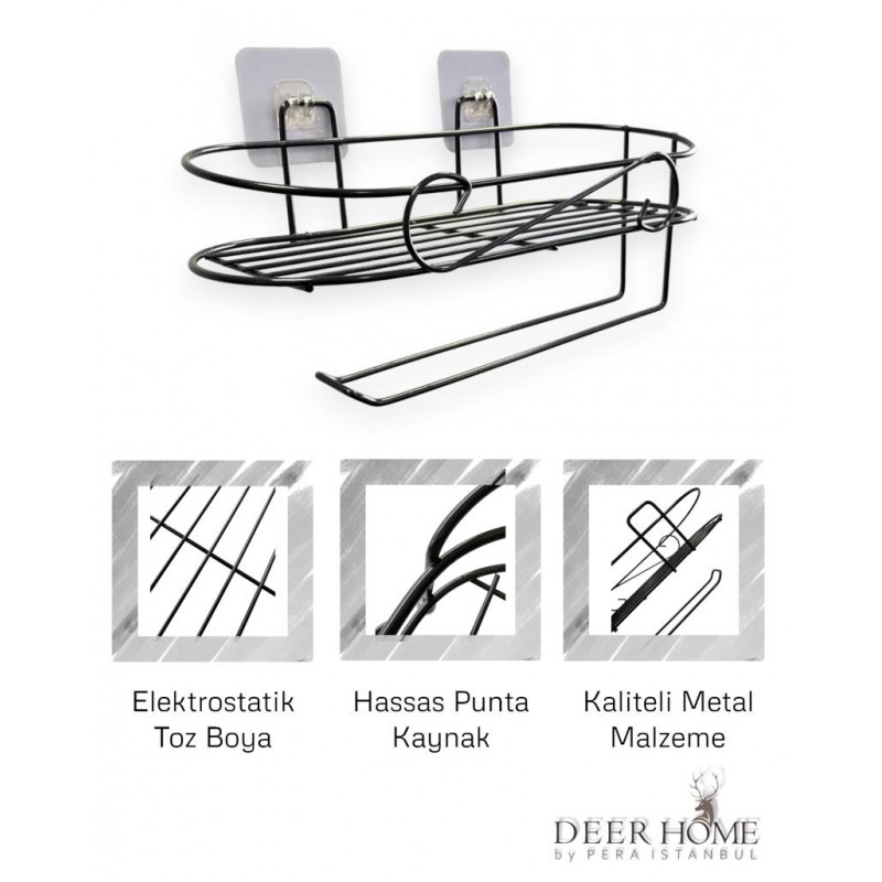 Paslanmaz Siyah Kendinden Yapışkanlı Mutfak Banyo Düzenleyici Kavanoz Havlu Kağıt Rafı