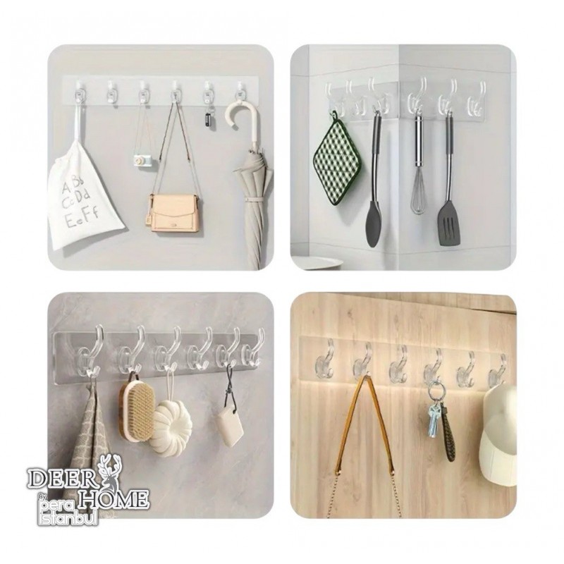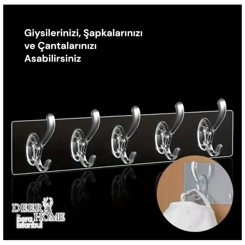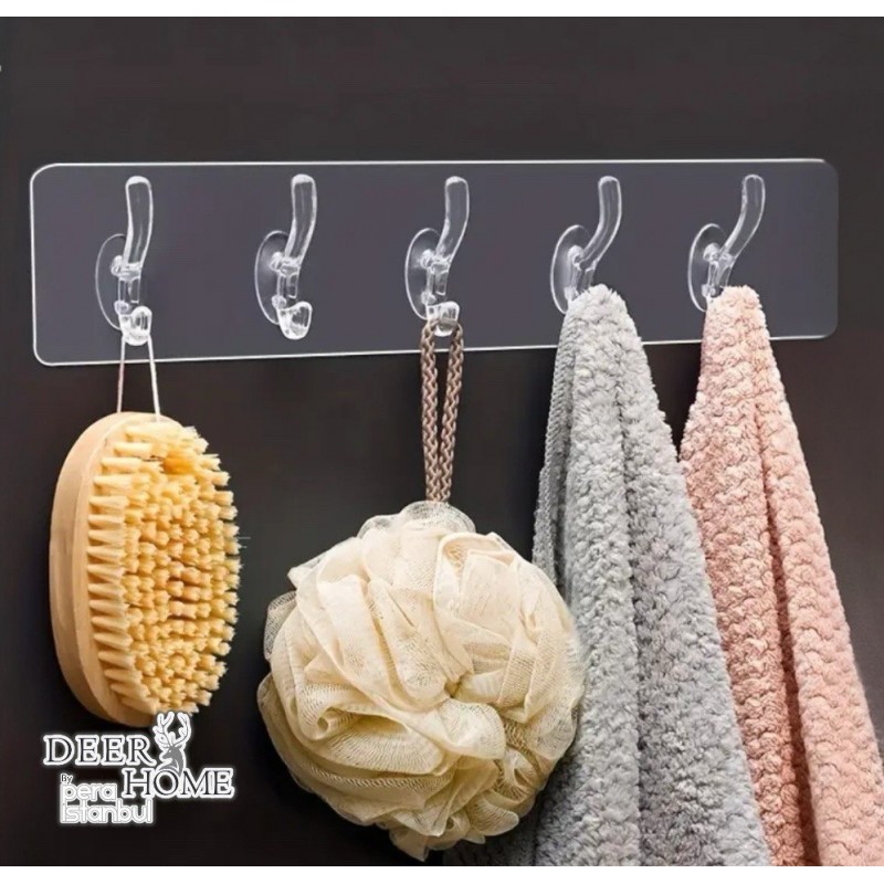 5'Li Süper Güçlü Şeffaf Çerçeve Askısı Lekesiz Duvar Yapışkanı Mutfak Banyo Raf Tutucu Aksesuarı