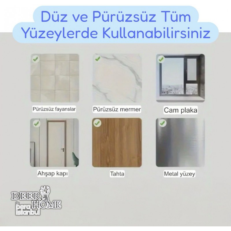 Not : Sadece Düz, Pürüzsüz ve Boyasız Zeminlerde Sağlam olarak Tutmaktadır. Diğer zeminler için uygun değildir.