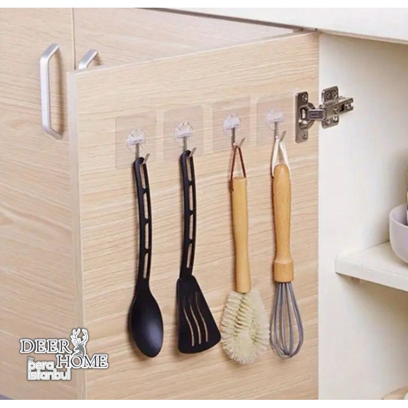4 Adet Süper Güçlü Şeffaf Mutfak Banyo Kancası Çerçeve Askısı Kendinden Yapışkanlı Şeffaf Yapışkan