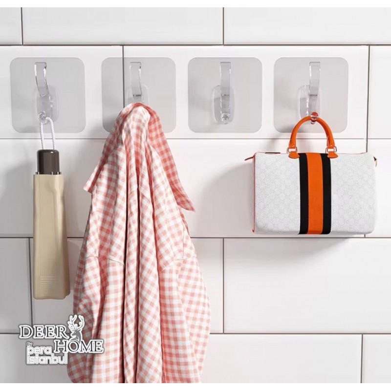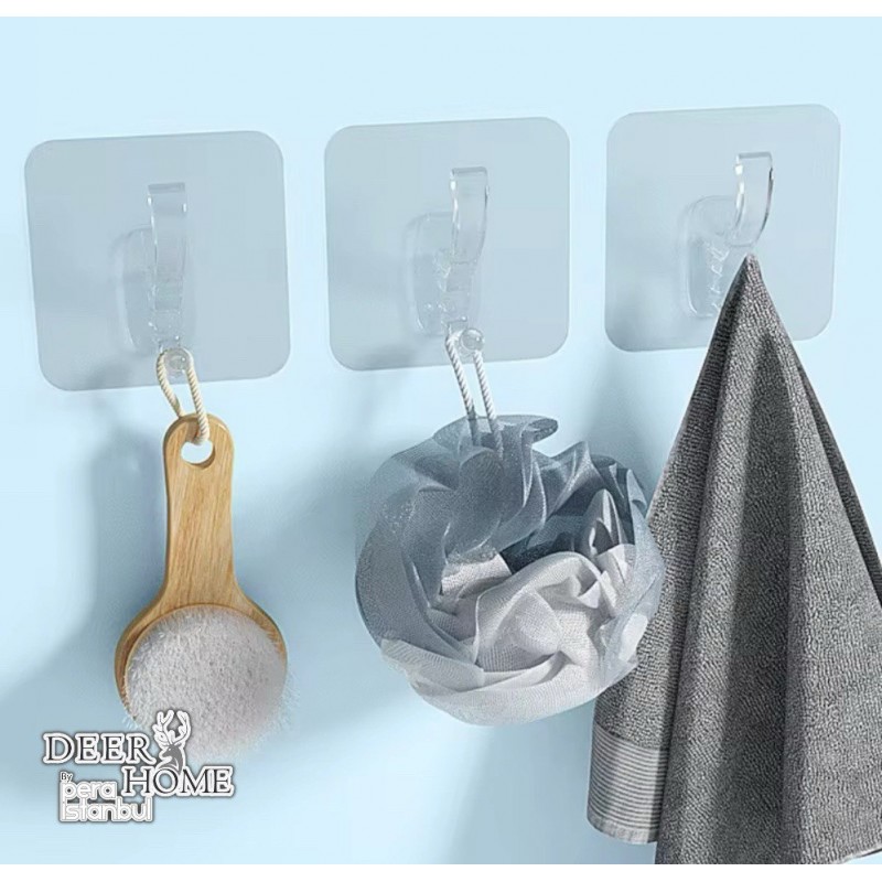 6 Adet Süper Güçlü Şeffaf Banyo Mutfak Kancası Çerçeve Askısı Kendinden Yapışkanlı Şeffaf Yapışkan